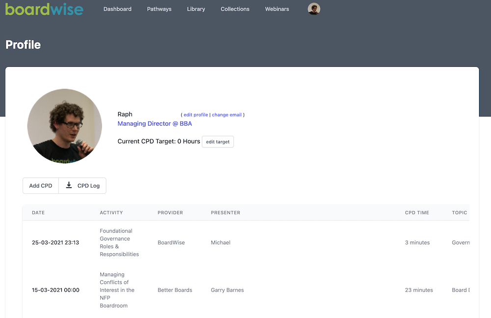 The CPD recording tools simplify the often cumbersome process of tracking professional development hours. Directors can log their learning activities directly on the platform, generating comprehensive CPD reports that can be easily submitted to professional associations. This streamlined process saves time and ensures directors stay compliant with their CPD obligations.