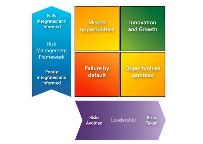 If an organisation has an integrated risk framework and implements high levels of control, but its leaders avoid taking on any risks in order to achieve their objectives, there is a chance they will miss out on opportunities.